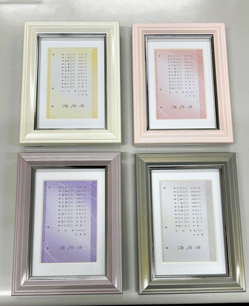 遺影写真には、専用の額縁をご用意しております。以前は黒色の額が主流でしたが近年では紫やグレー、ピンクなど落ち着いた色が一般的となっております。
